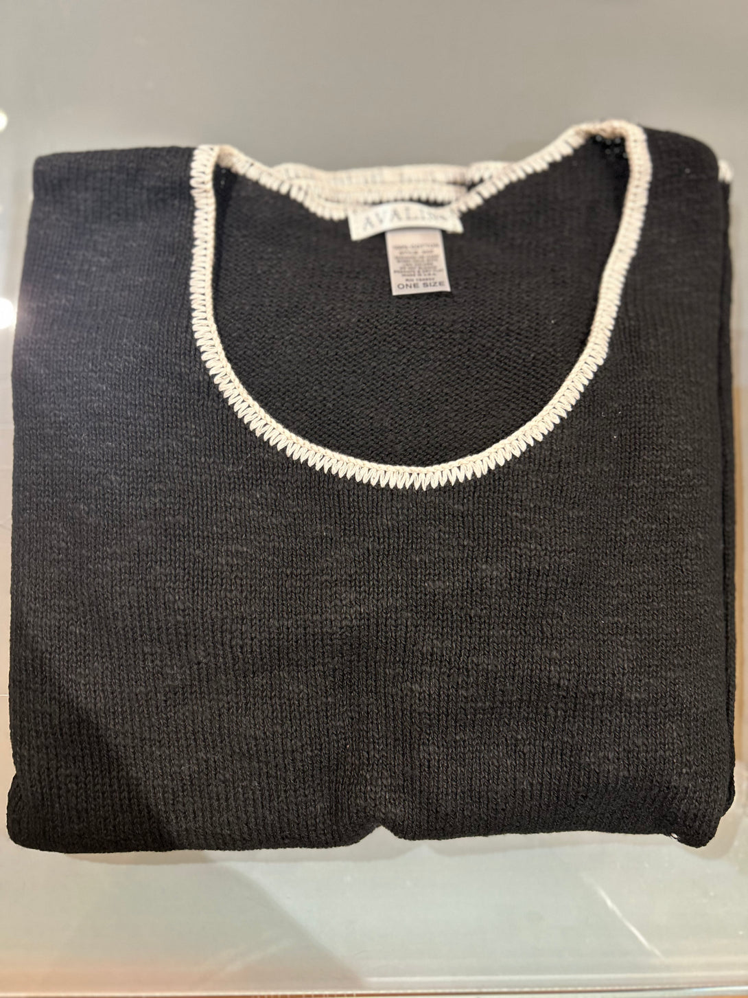 Boxy Crew Cotton Sweater with Tipping